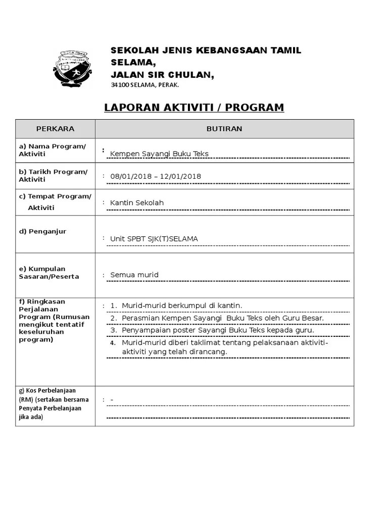 Gimik perasmian 8.25 pagi : Kempen sayangi buku teks 2017. Pertandingan melukis poster sayangi buku teks. Hal tersebut seperti hutan yang gundul, banyaknya pemakaian kendaraan bermotor, banyaknya asap pabrik dan masih banyak lagi . Melukis poster kulit buku teks ( tahap 2). Baca versi flipbook dari brosur kempen sayangi buku teks.